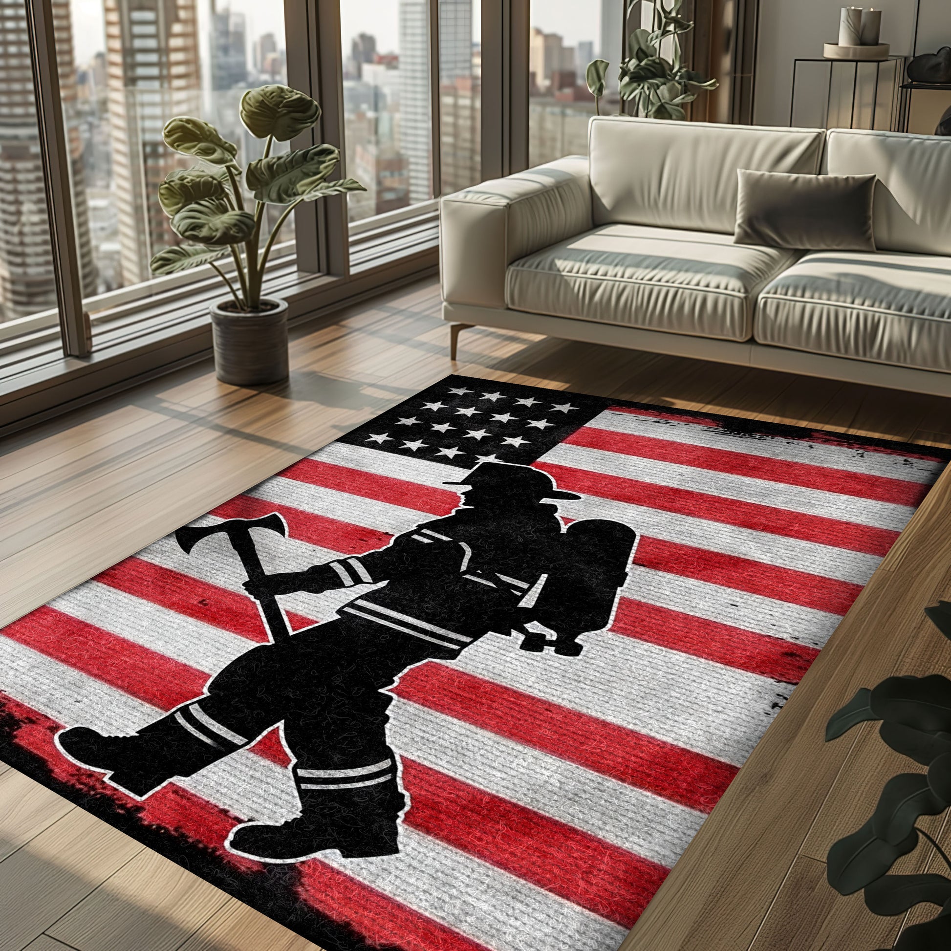 Patriotism Perseveres: Firefighter Rectangular Rug for Living Room Bedroom with Personalization Option, Firefighter Rugs for Living Room Bedroom, Firefighter Rectangular Rugs Full Size FR179