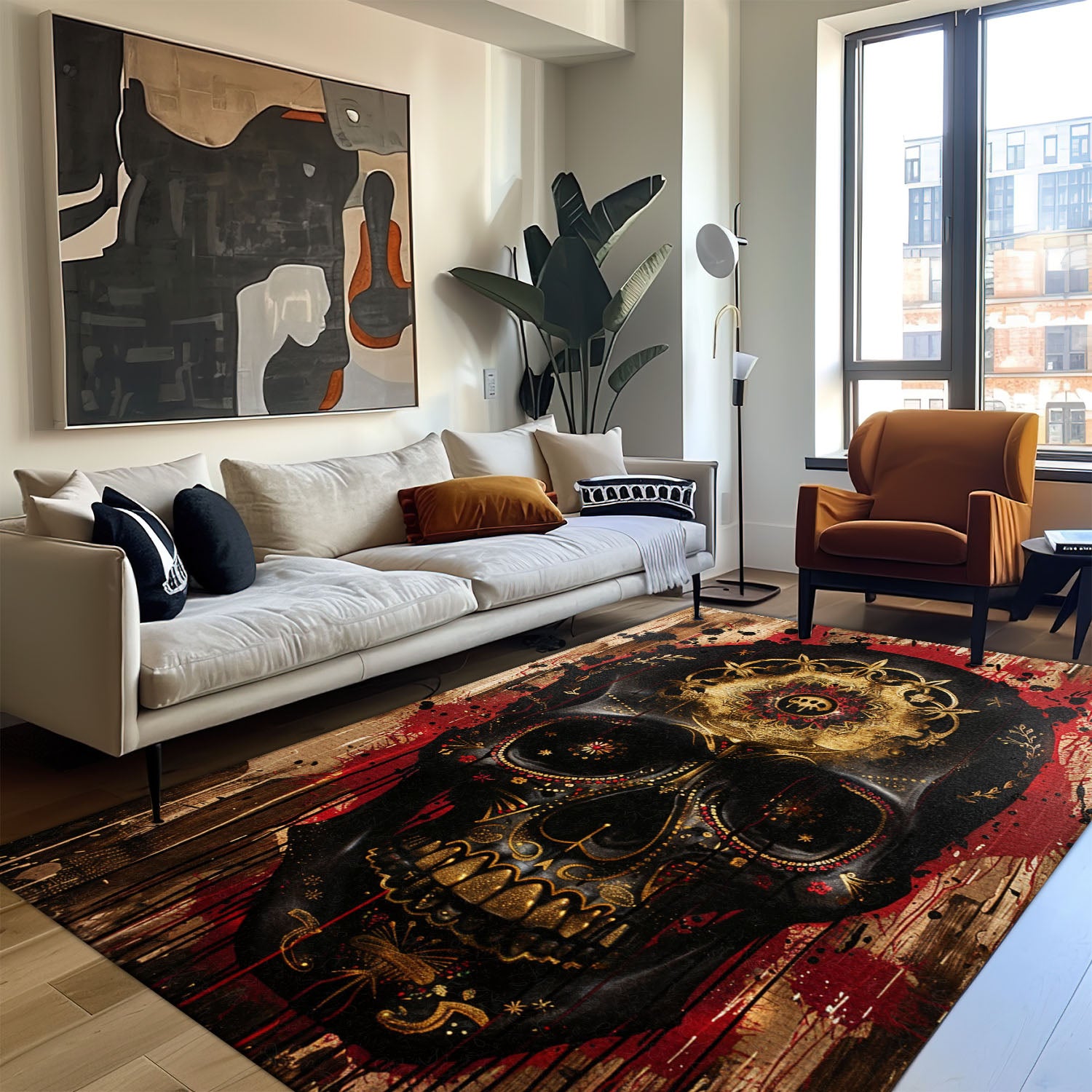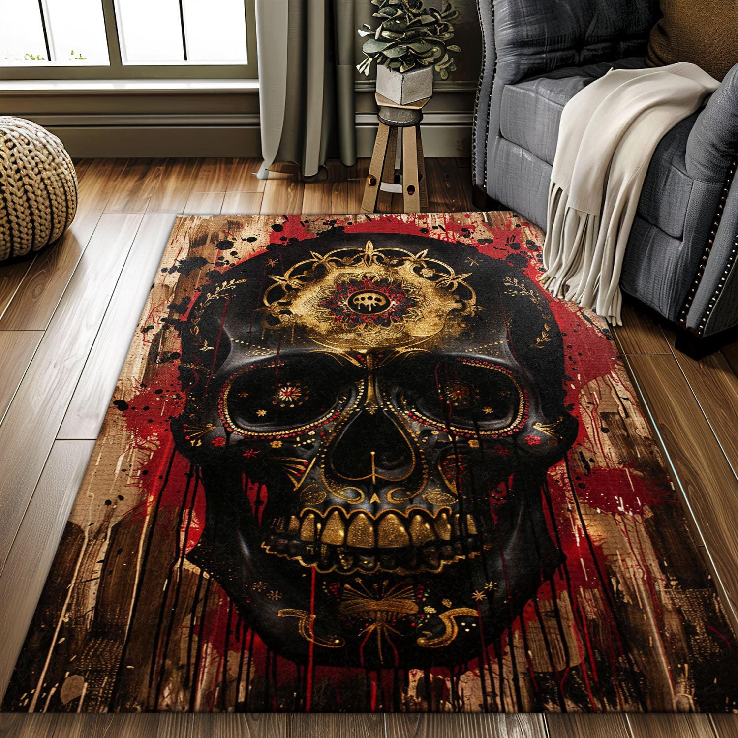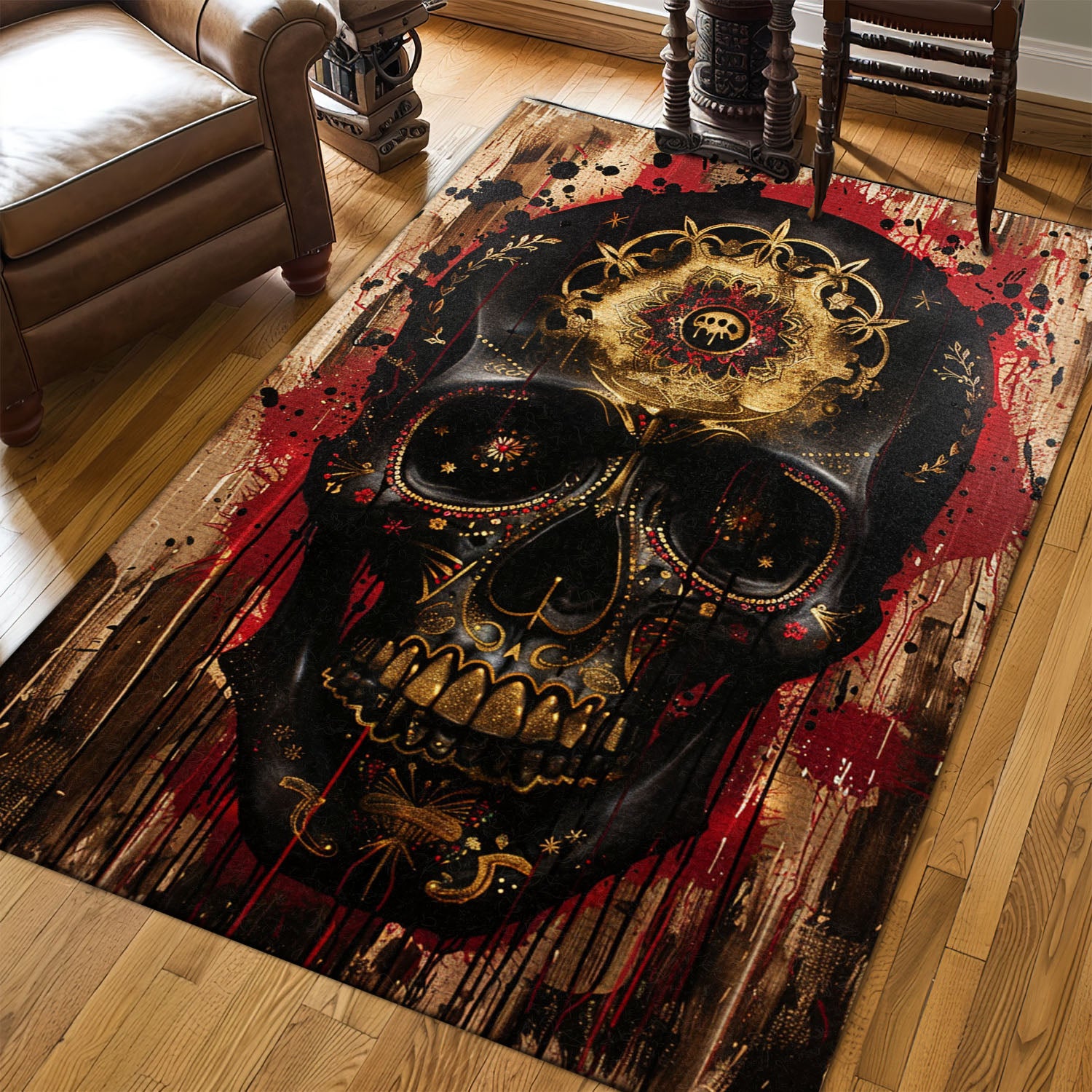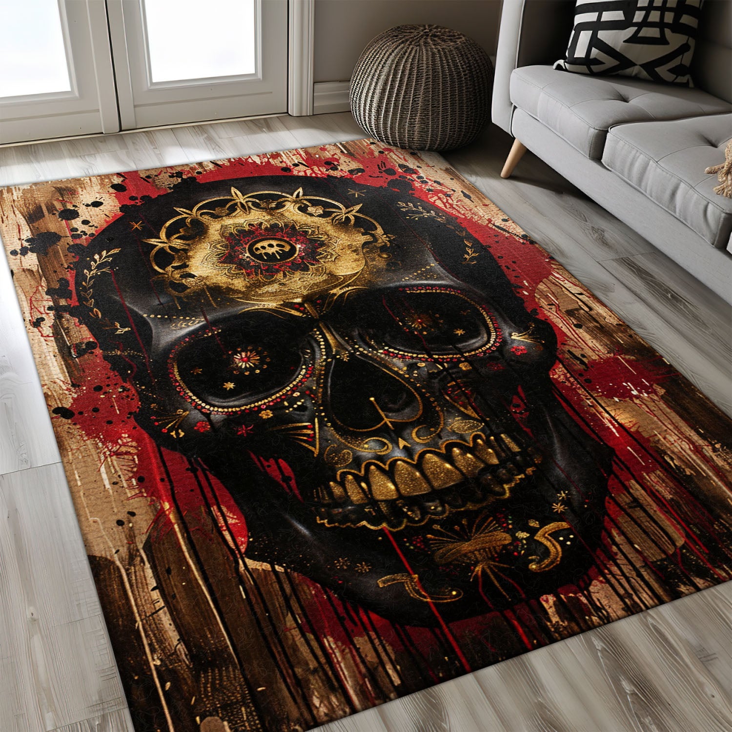Personalized Batik Sugar Skull Inspired Carpet: Artistic Flair for Your Floors, Skull Rug, Area Rugs 5x8, 4x6, 3x5 Size for Living Room Bedroom Home Decorative Skull K53
