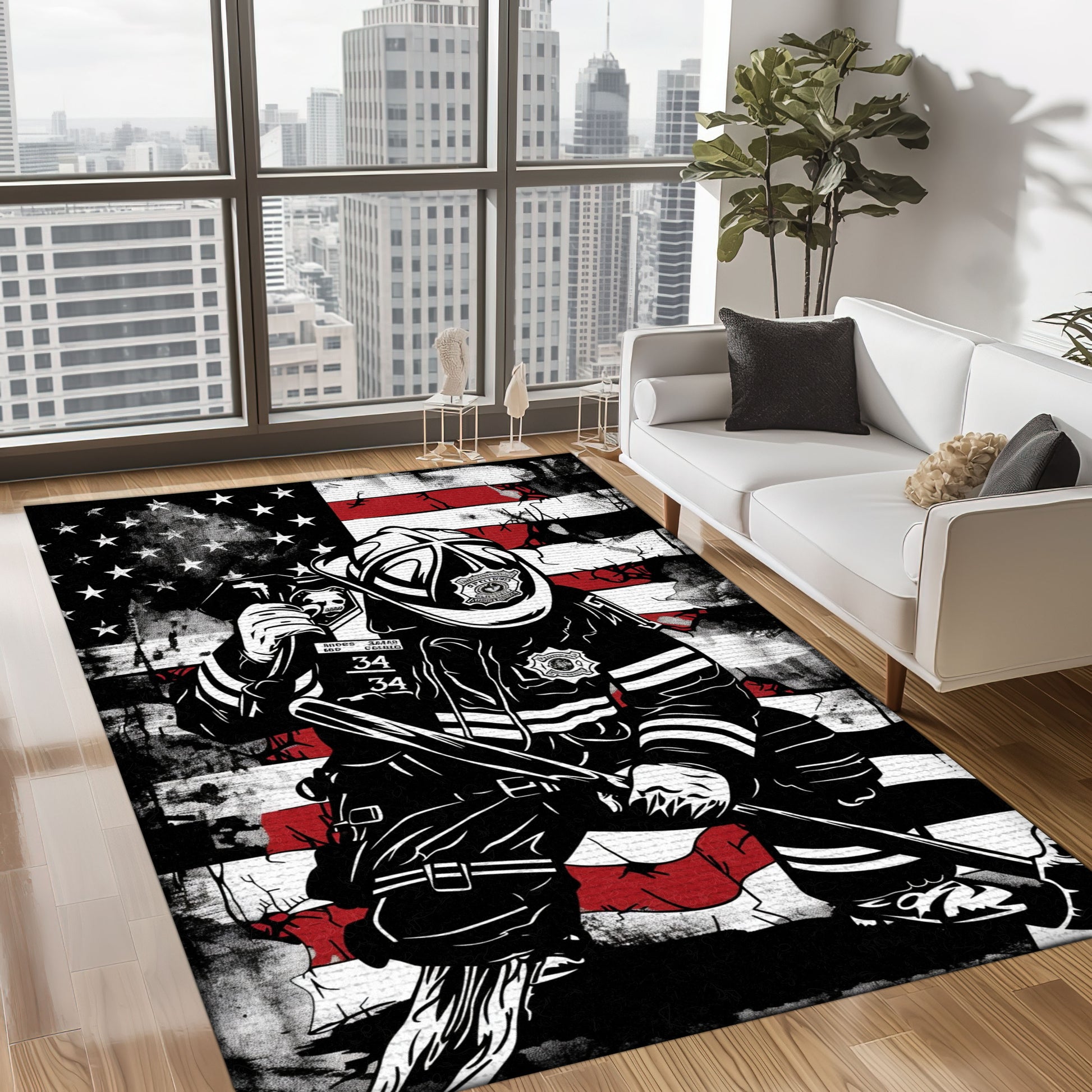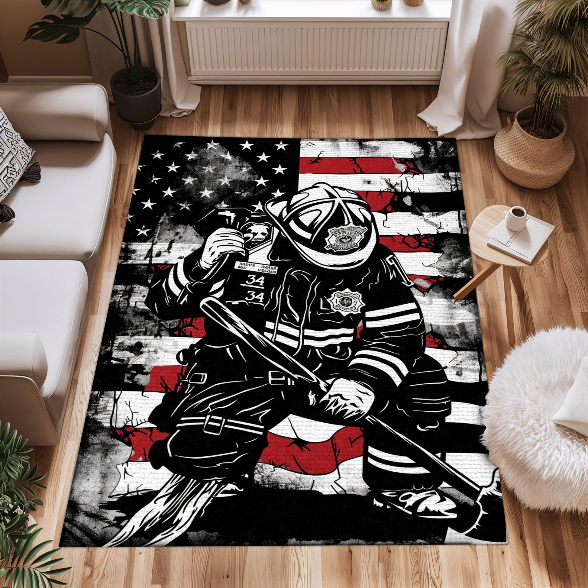 Red, White, and Courage: Personalized America Flag Fire Fighter Rug, Firefighter Rugs for Living Room Bedroom, Firefighter Rectangular Rugs Full Size FR150