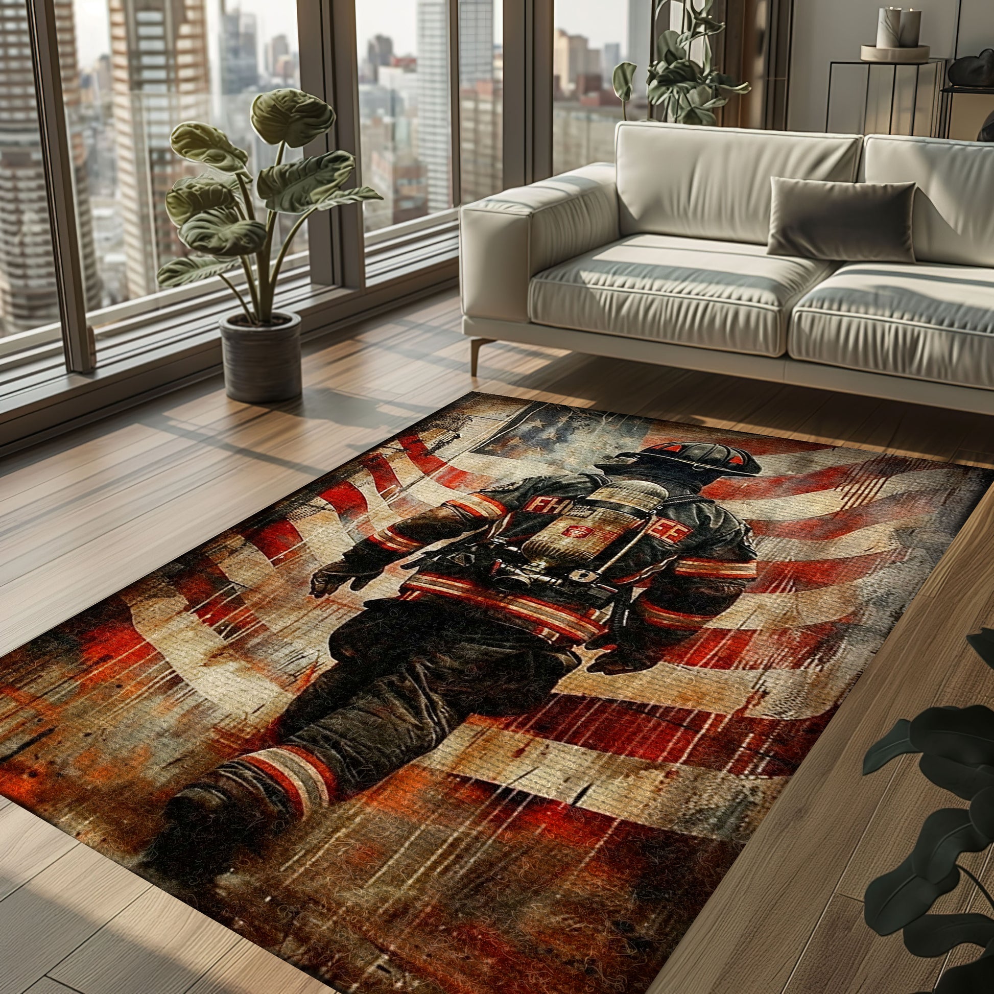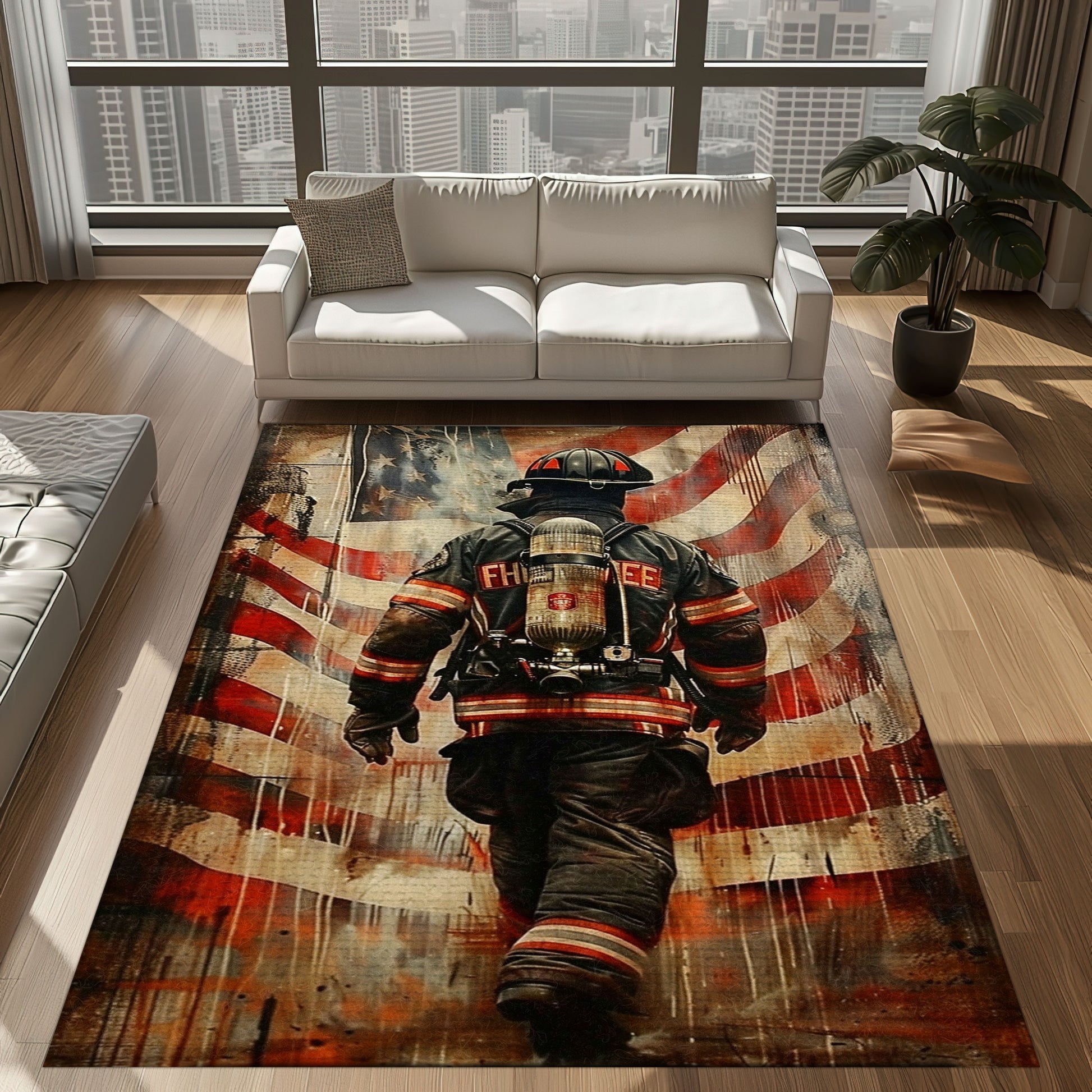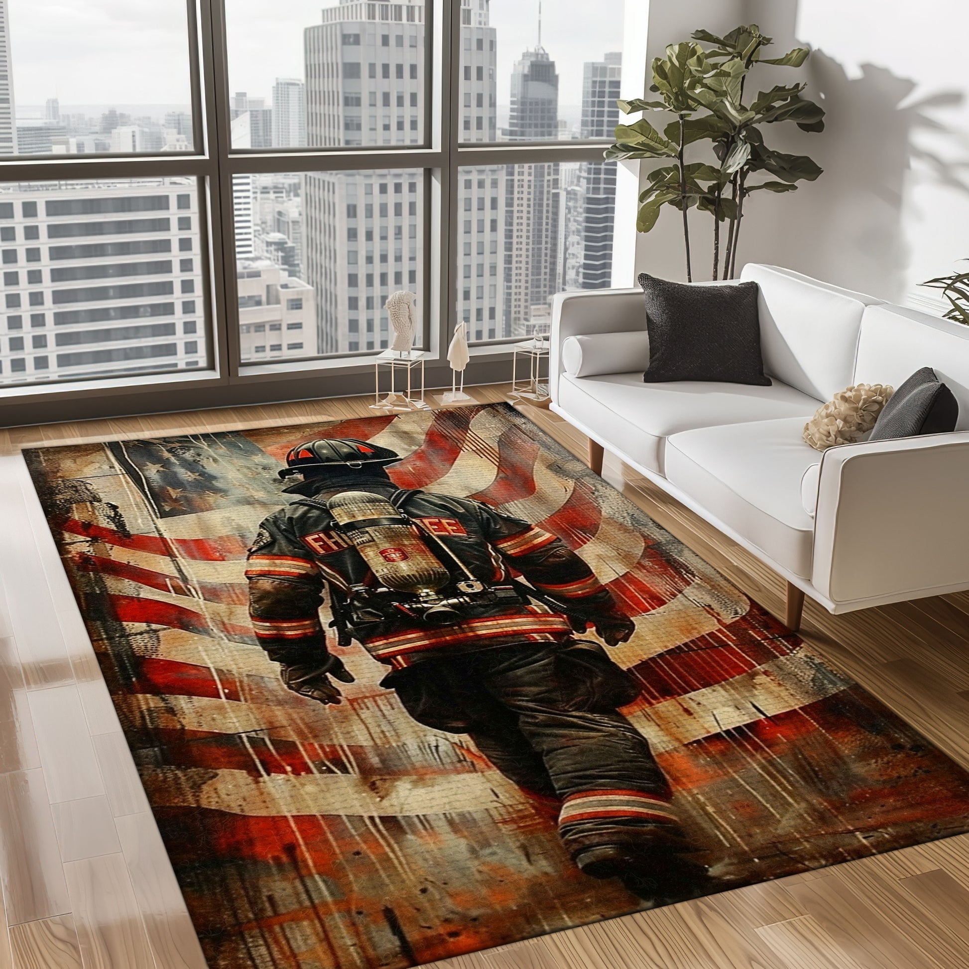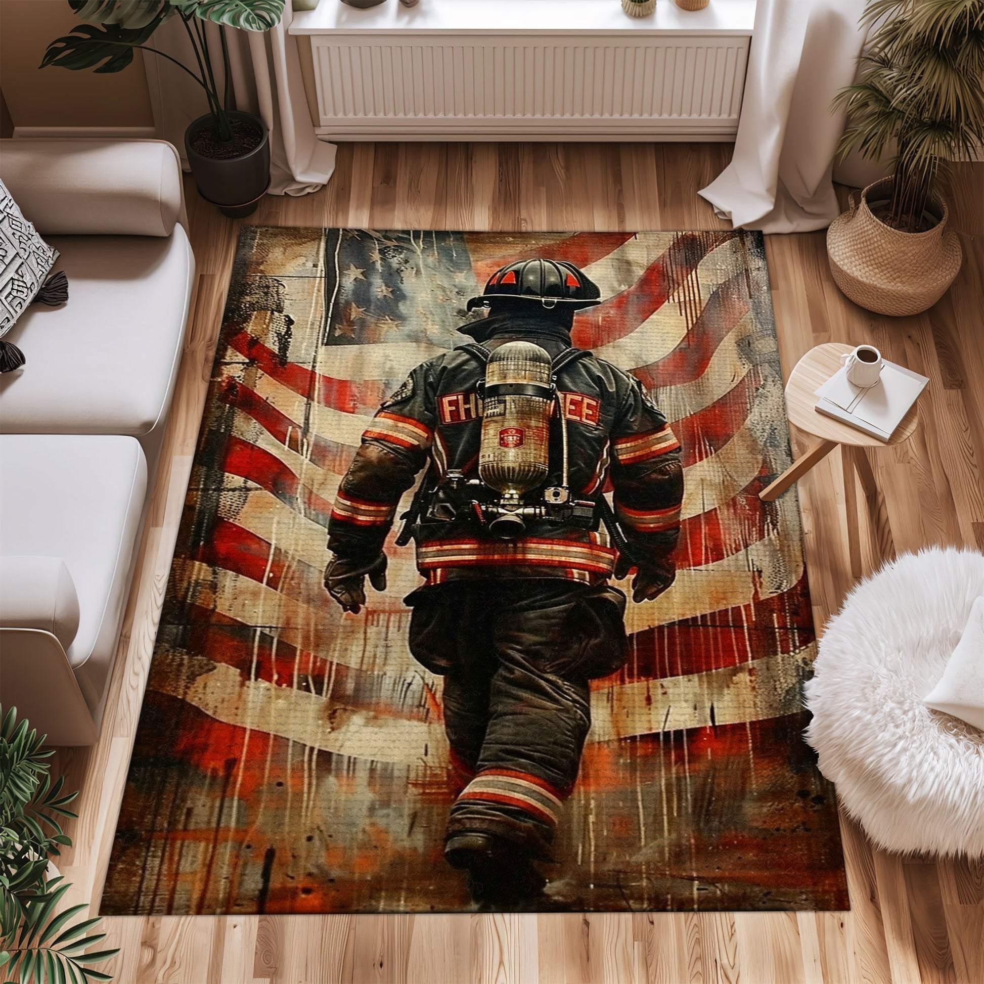 Red, White, and Heroic: Personalized America Flag Fire Fighter Area Rug, Firefighter Rugs for Living Room Bedroom, Firefighter Rectangular Rugs Full Size FR157