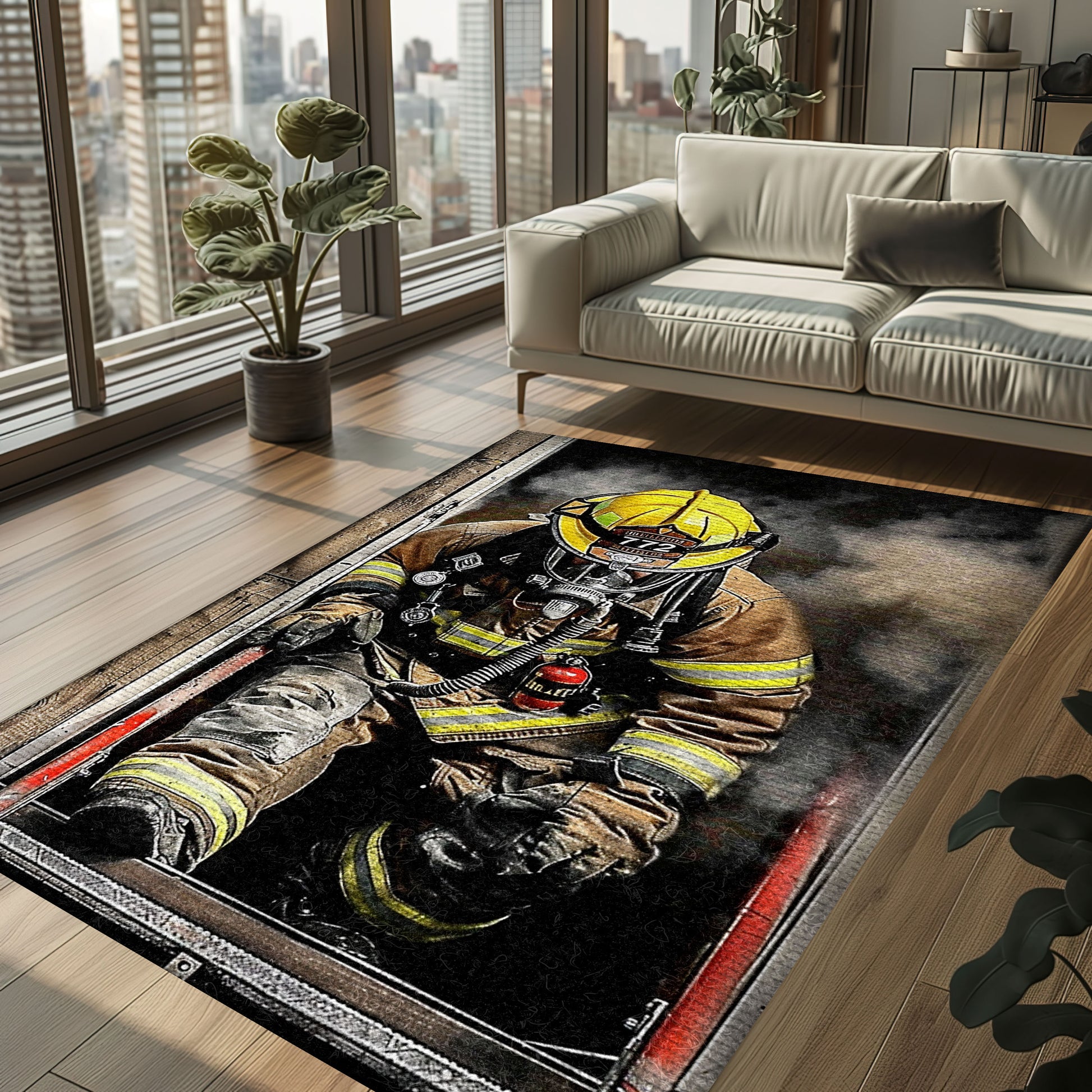 Salute to Service: Personalized America Flag Fire Fighter Area Rug, Firefighter Rugs for Living Room Bedroom, Firefighter Rectangular Rugs Full Size FR153