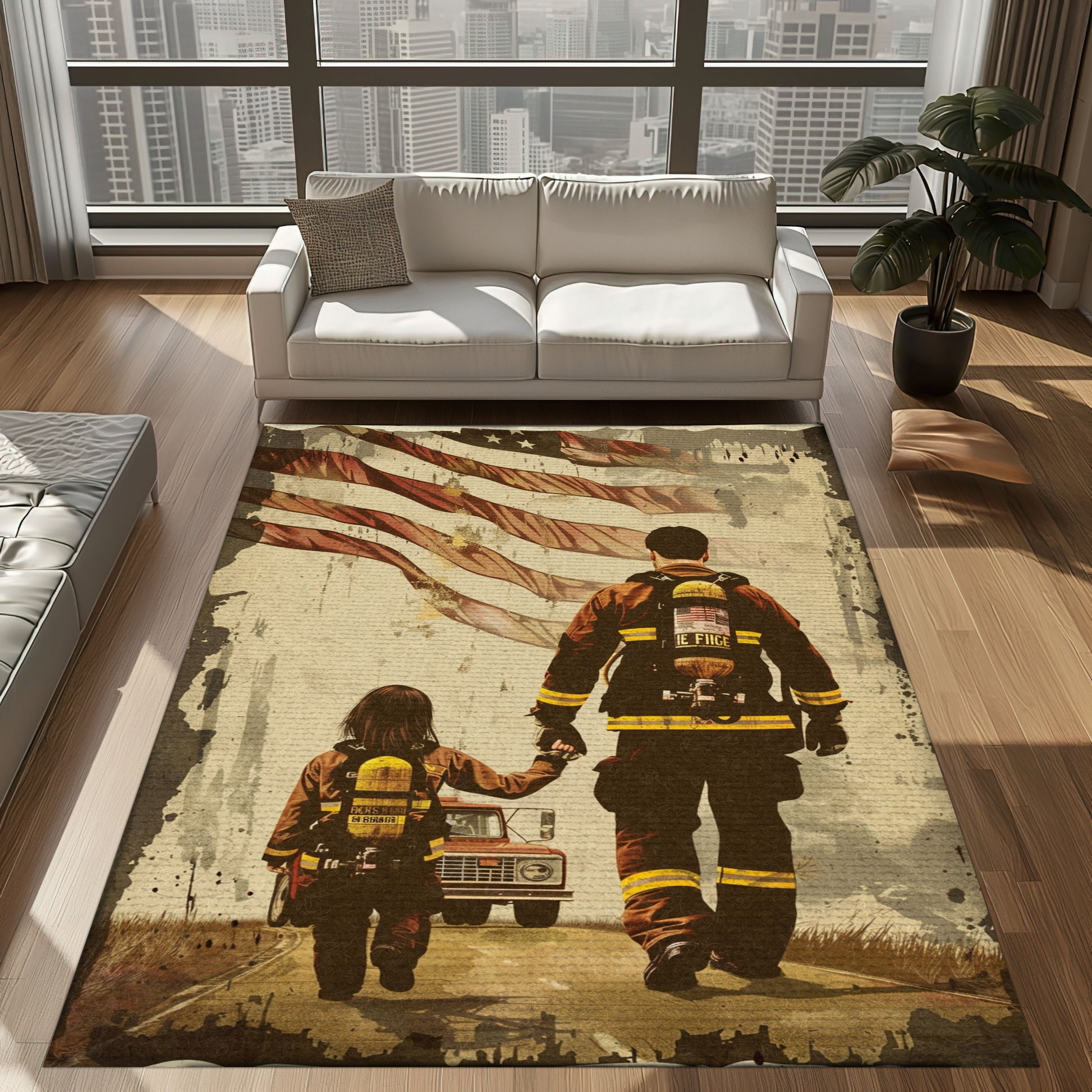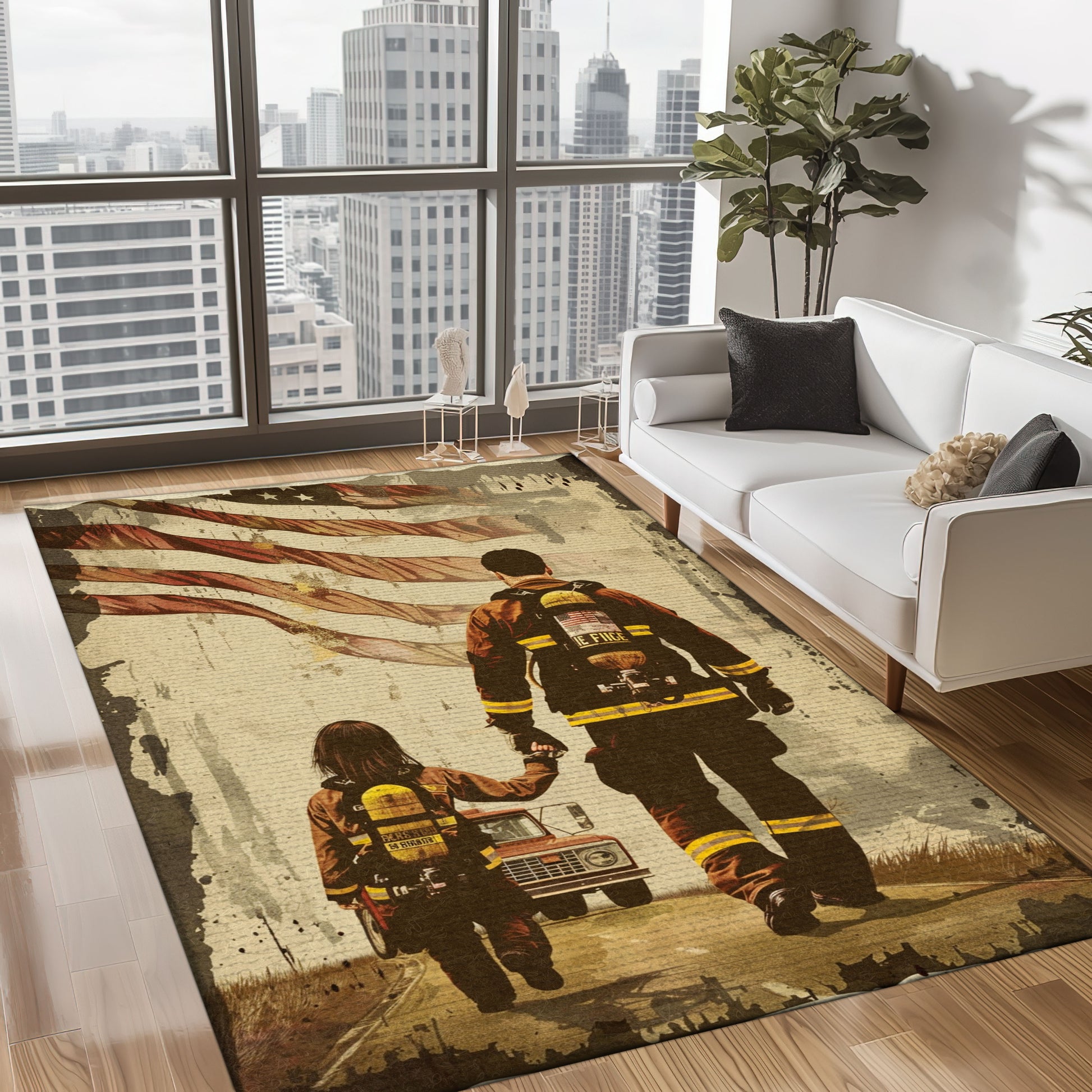 Shared Passion: Custom Firefighter Rugs for Father-Daughter Quality Time, Firefighter Rugs for Living Room Bedroom, Firefighter Rectangular Rugs Full Size FR118