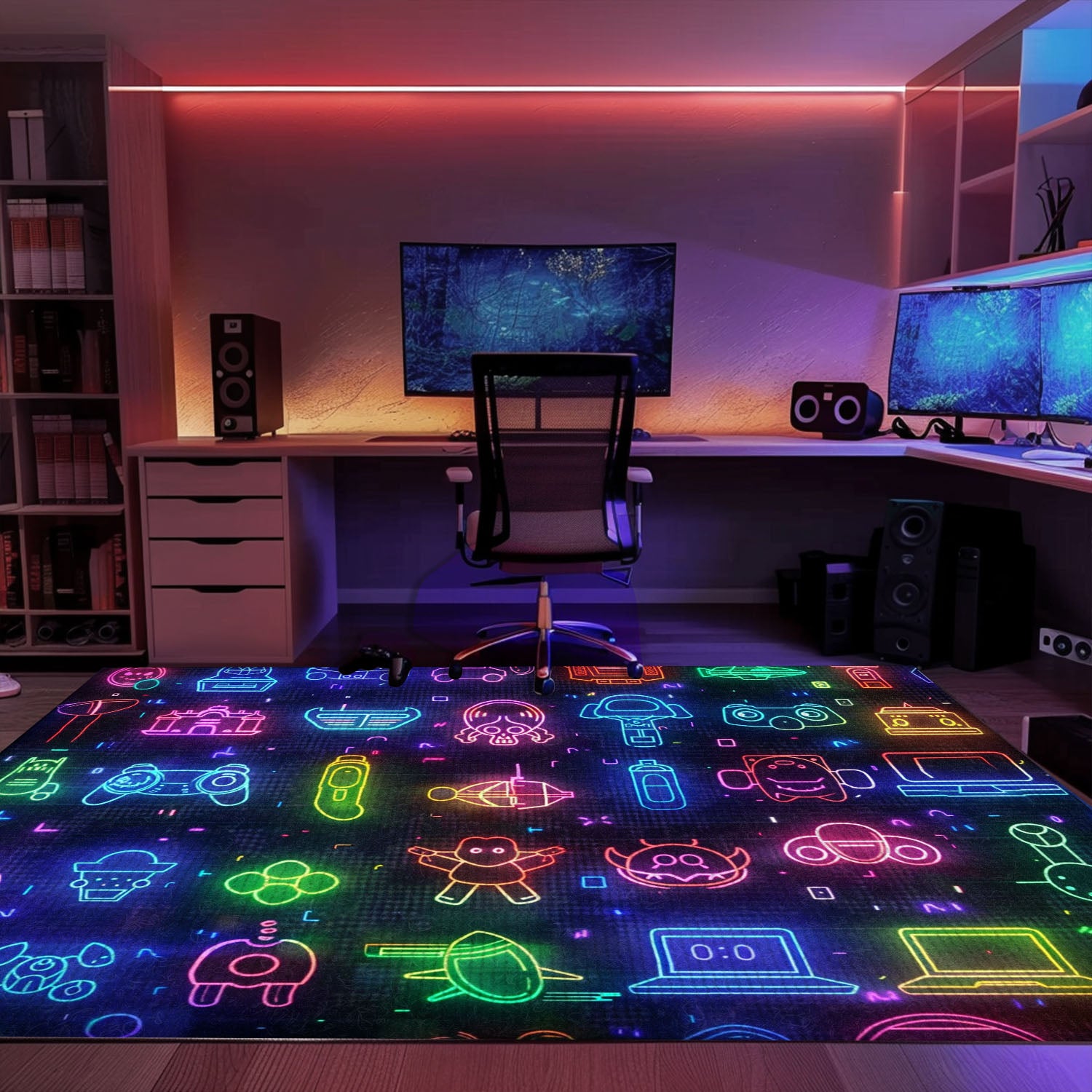 Spruce Up Your Gaming Den with the Dark and Neon 80s Arcade NES Game 8bit Area Rug, Arcade Decor, Gift for Gamers, Video Game Lovers G310