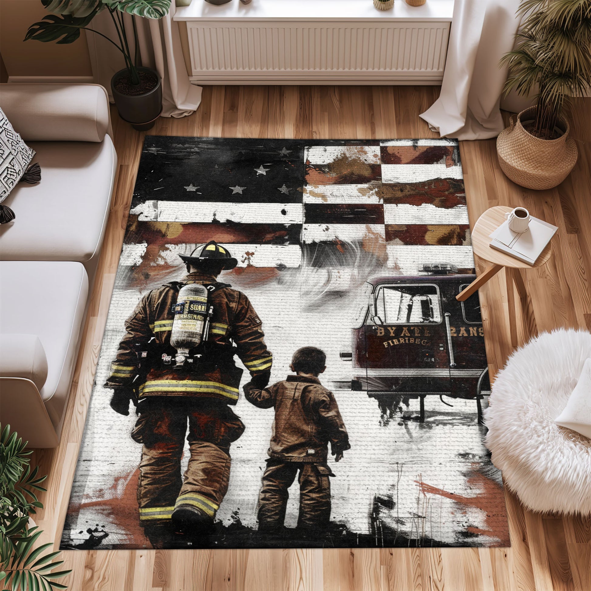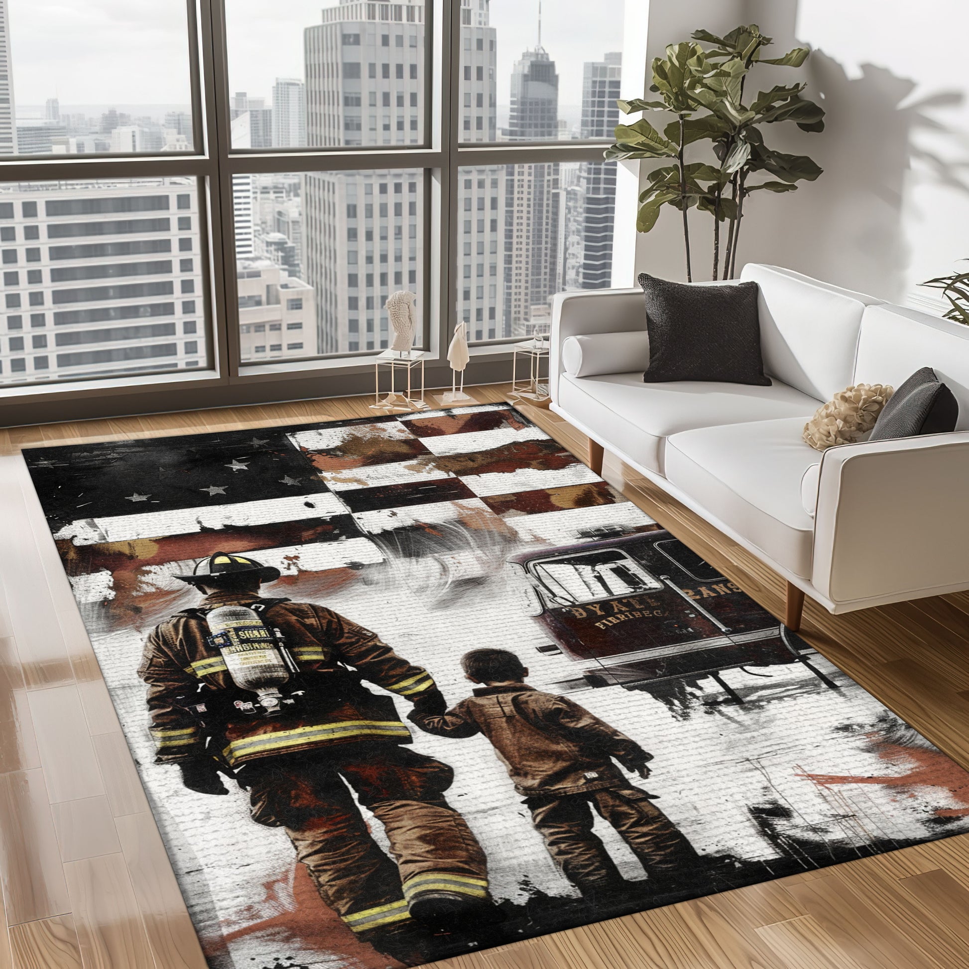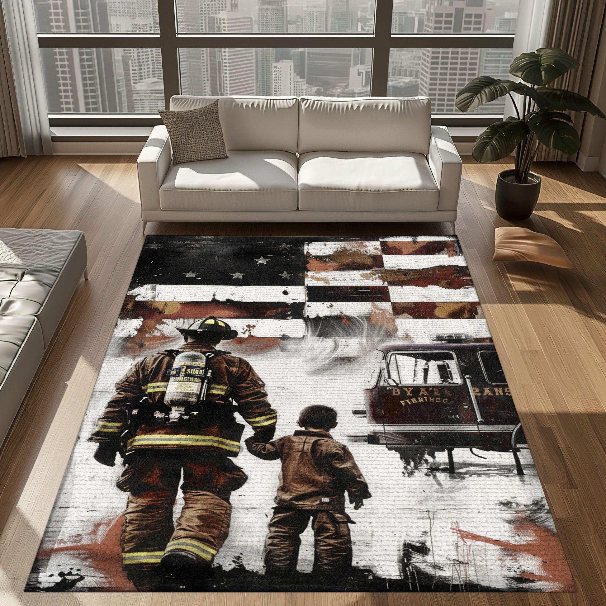 Symbol of Valor: Dad Fire Fighter and Son Firefighter Personalized Home Rugs, Firefighter Rugs for Living Room Bedroom, Firefighter Rectangular Rugs Full Size FR99