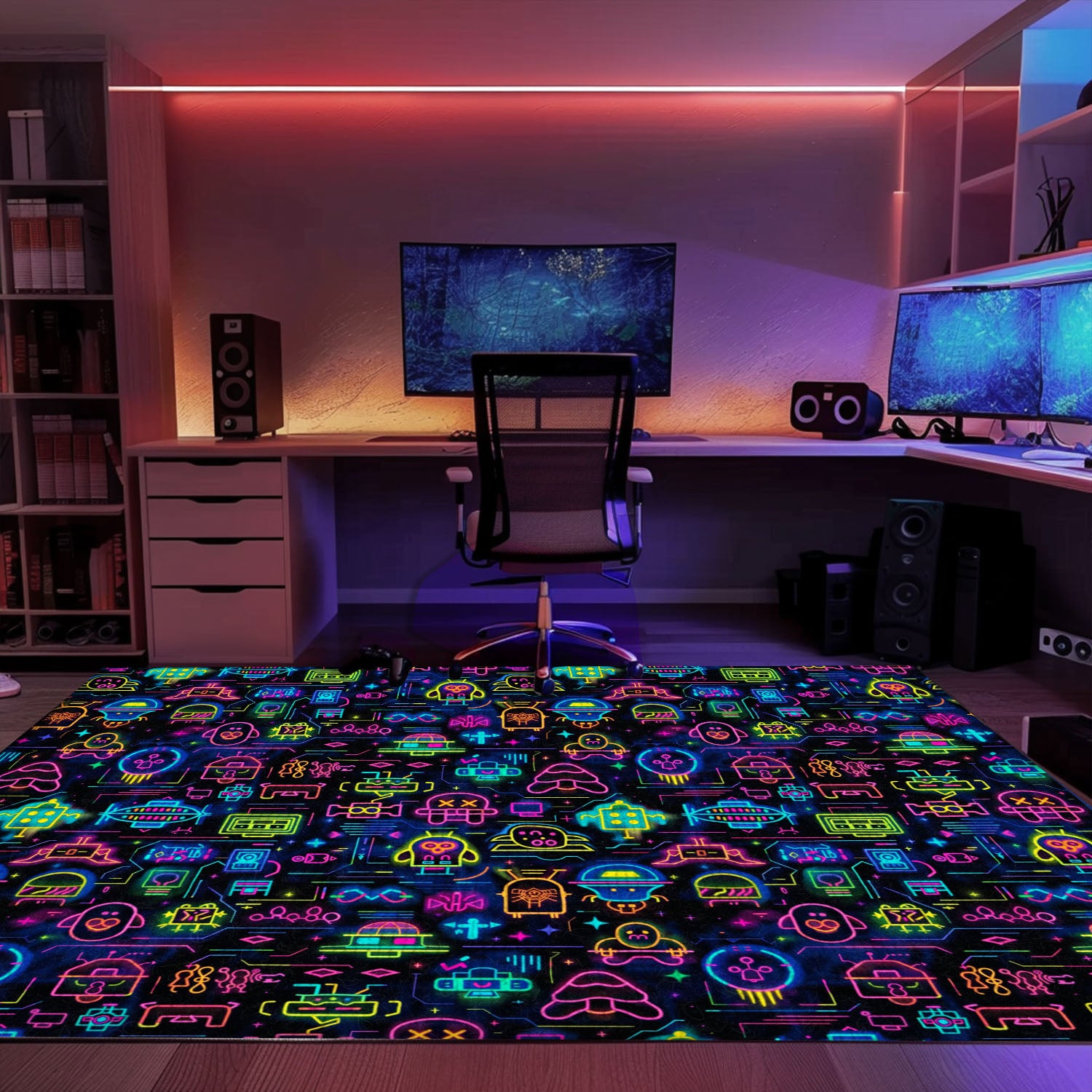 Transform Your Home Decor with Dark and Neon 80s Arcade NES Game 8bit Rugs: Perfect for Gamers, Arcade Decor, Gift for Gamers, Video Game Lovers G342