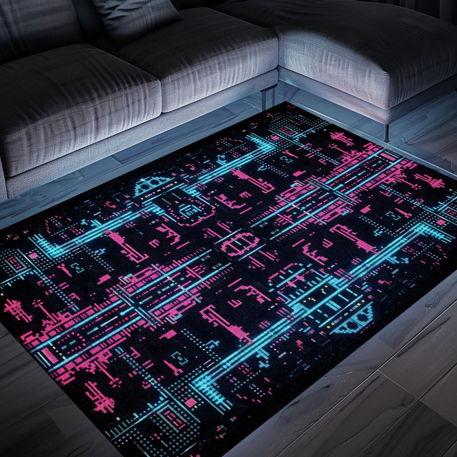 Transform Your Living Space with Dark and Neon 80s Arcade NES Game 8bit Rugs for Boys, Arcade Decor, Gift for Gamers, Video Game Lovers G281
