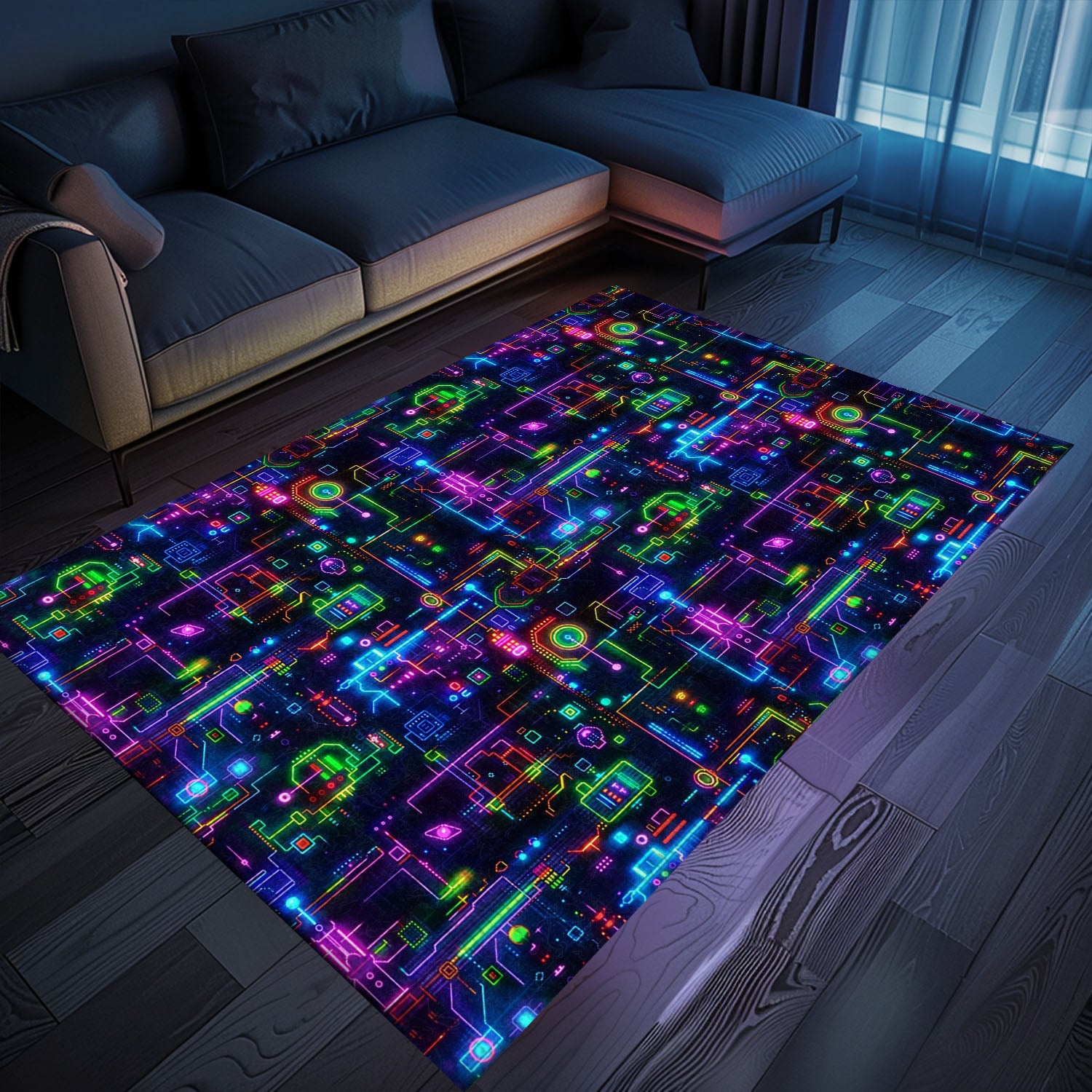 Transport Yourself to the 80s with the Dark and Neon Arcade NES Game 8bit Area Rug, Arcade Decor, Gift for Gamers, Video Game Lovers G319