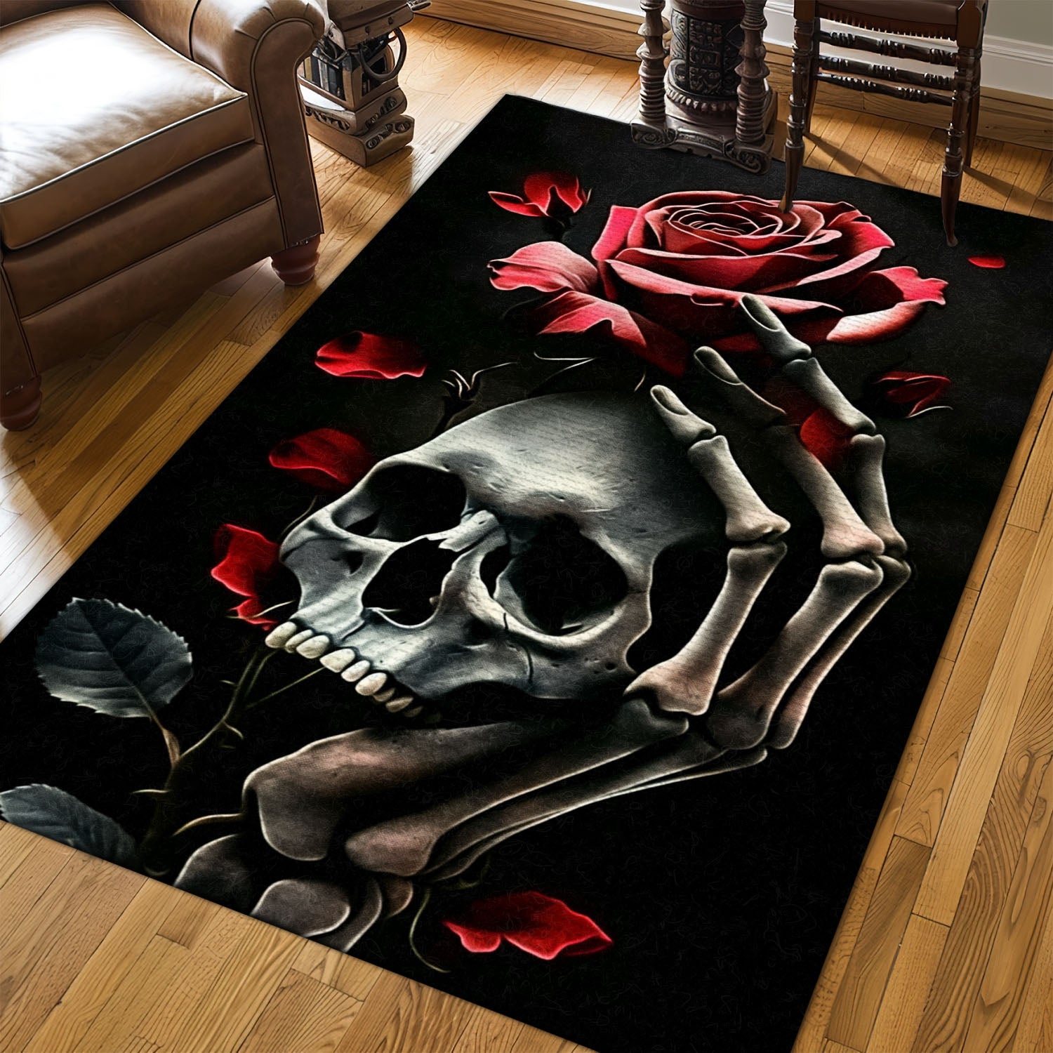 Colorful Skull Rose Design Area Rug: Enhance Your Living Space, Skull Rug, Area Rugs 5x8, 4x6, 3x5 Size for Living Room Bedroom Home Decorative Skull K05