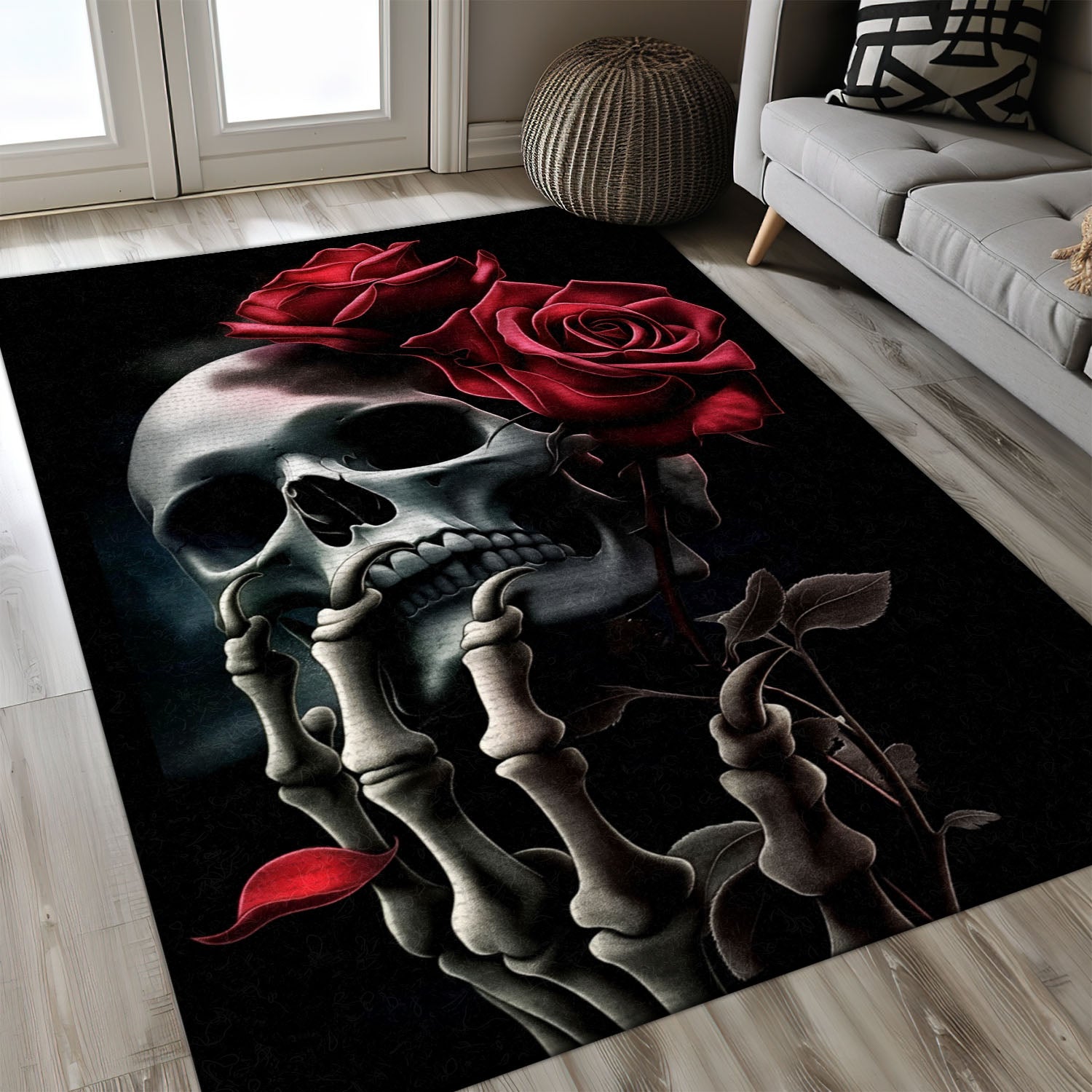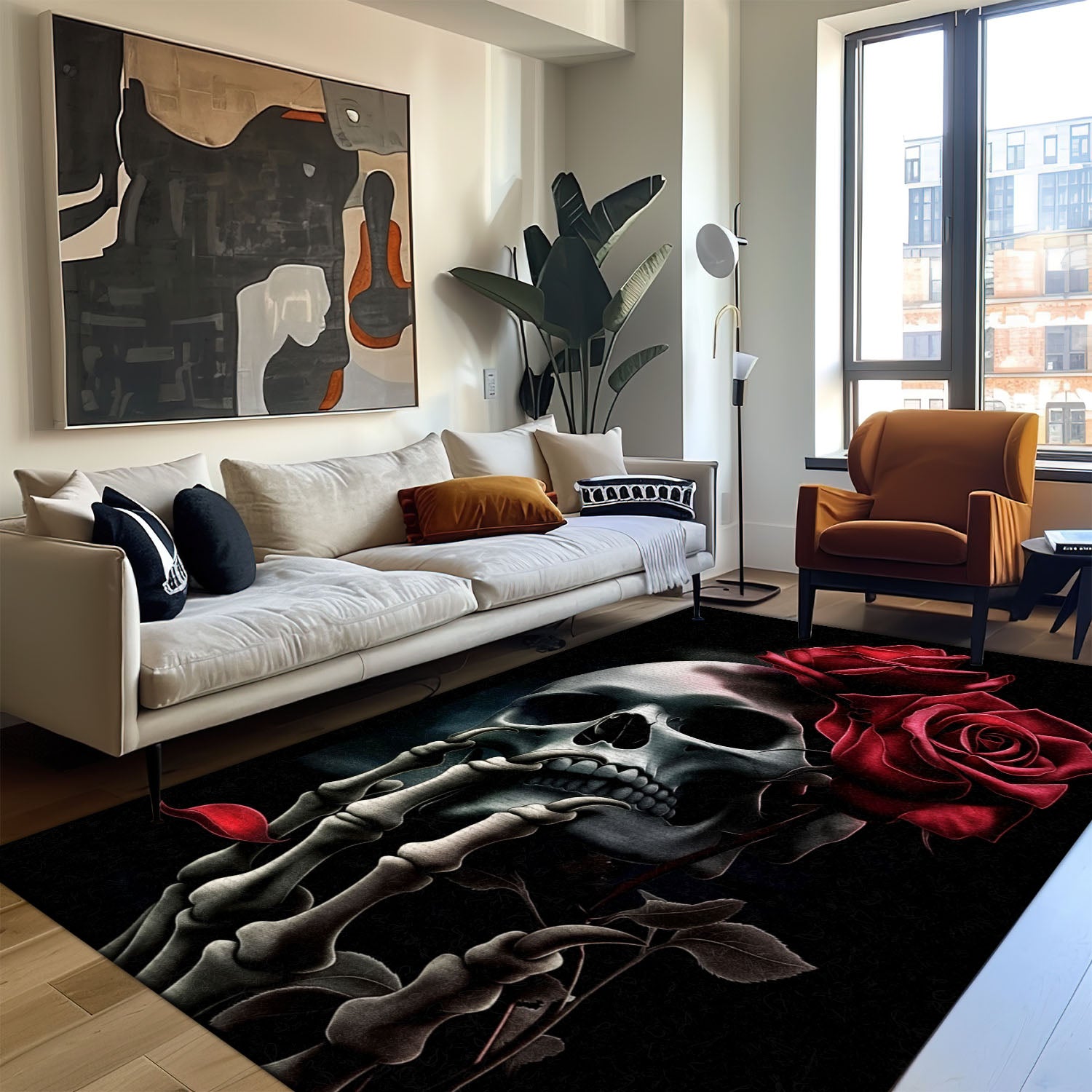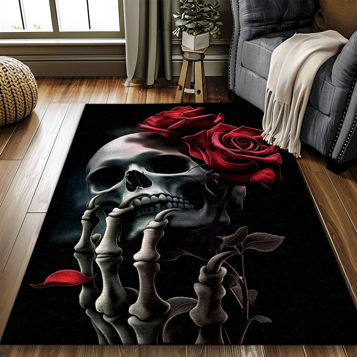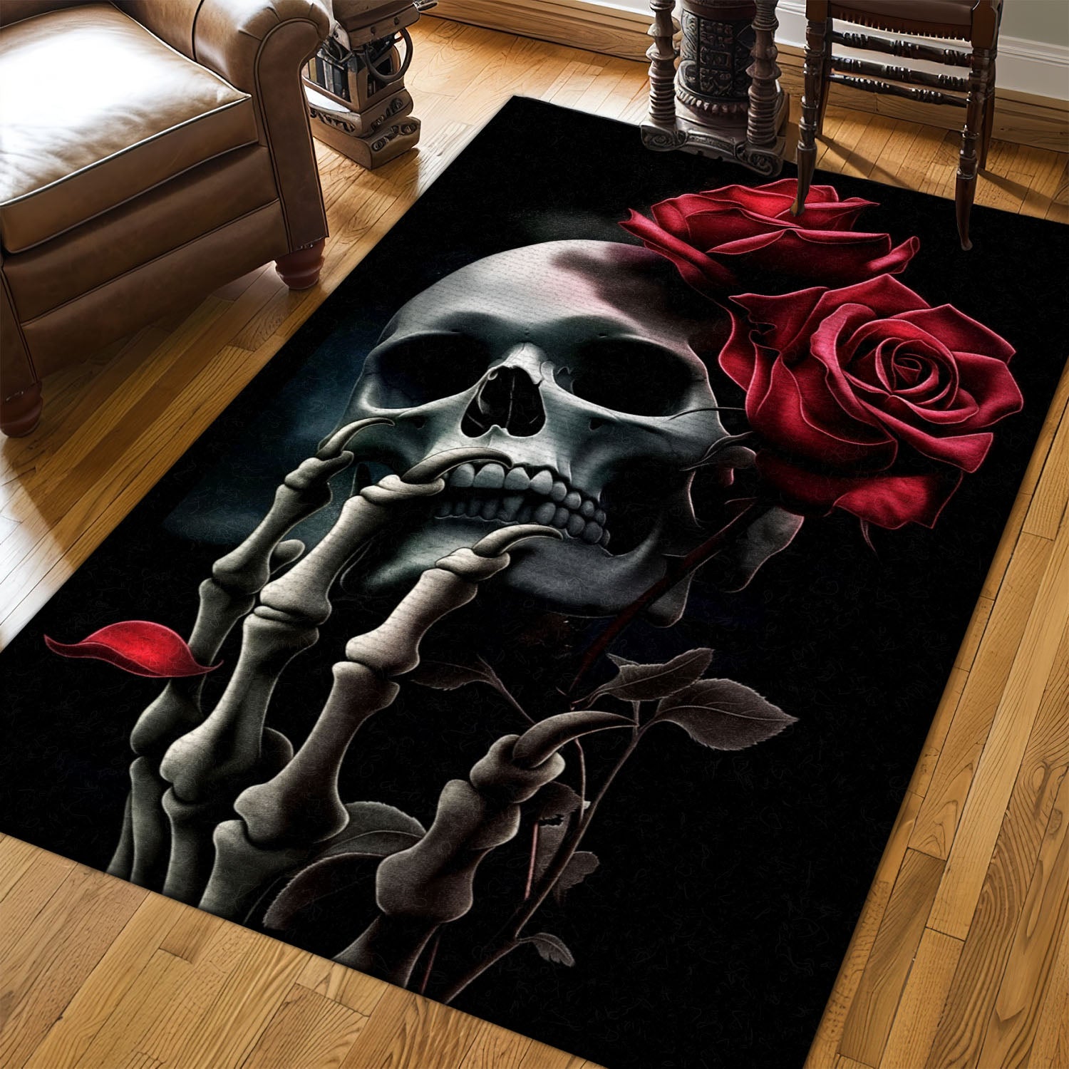 Unique Sugar Skull Rose Design Rug: Accentuate Your Living Space, Skull Rug, Area Rugs 5x8, 4x6, 3x5 Size for Living Room Bedroom Home Decorative Skull K02