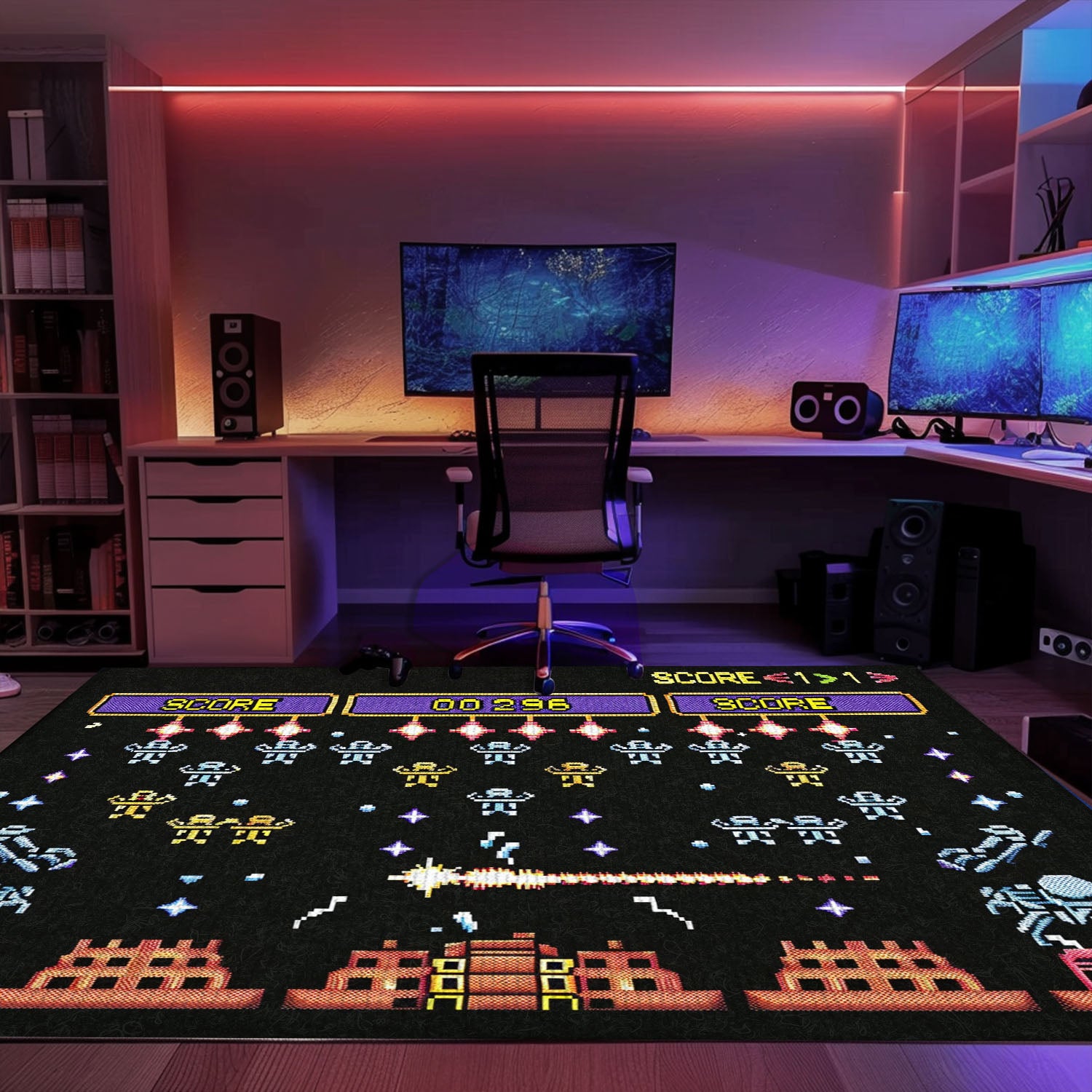 Upgrade Your Home Decor with 80s Arcade Carpet Infused with Space Invaders Aesthetic, Perfect for Arcade Enthusiasts, Arcade Decor, Gift for Gamers, Video Game Lovers G234