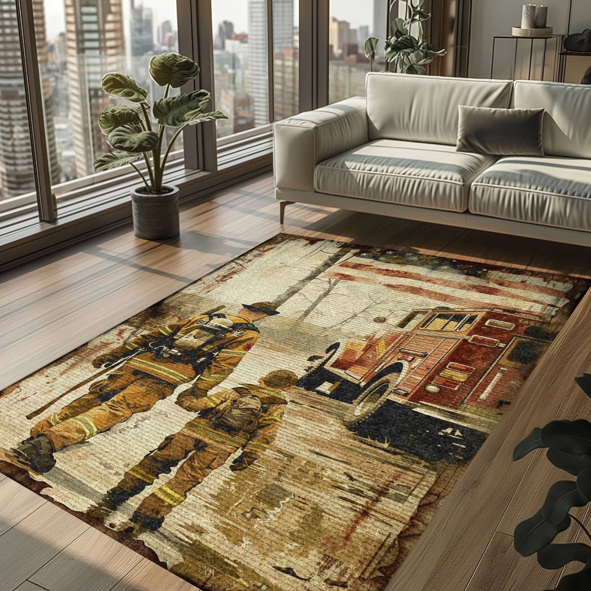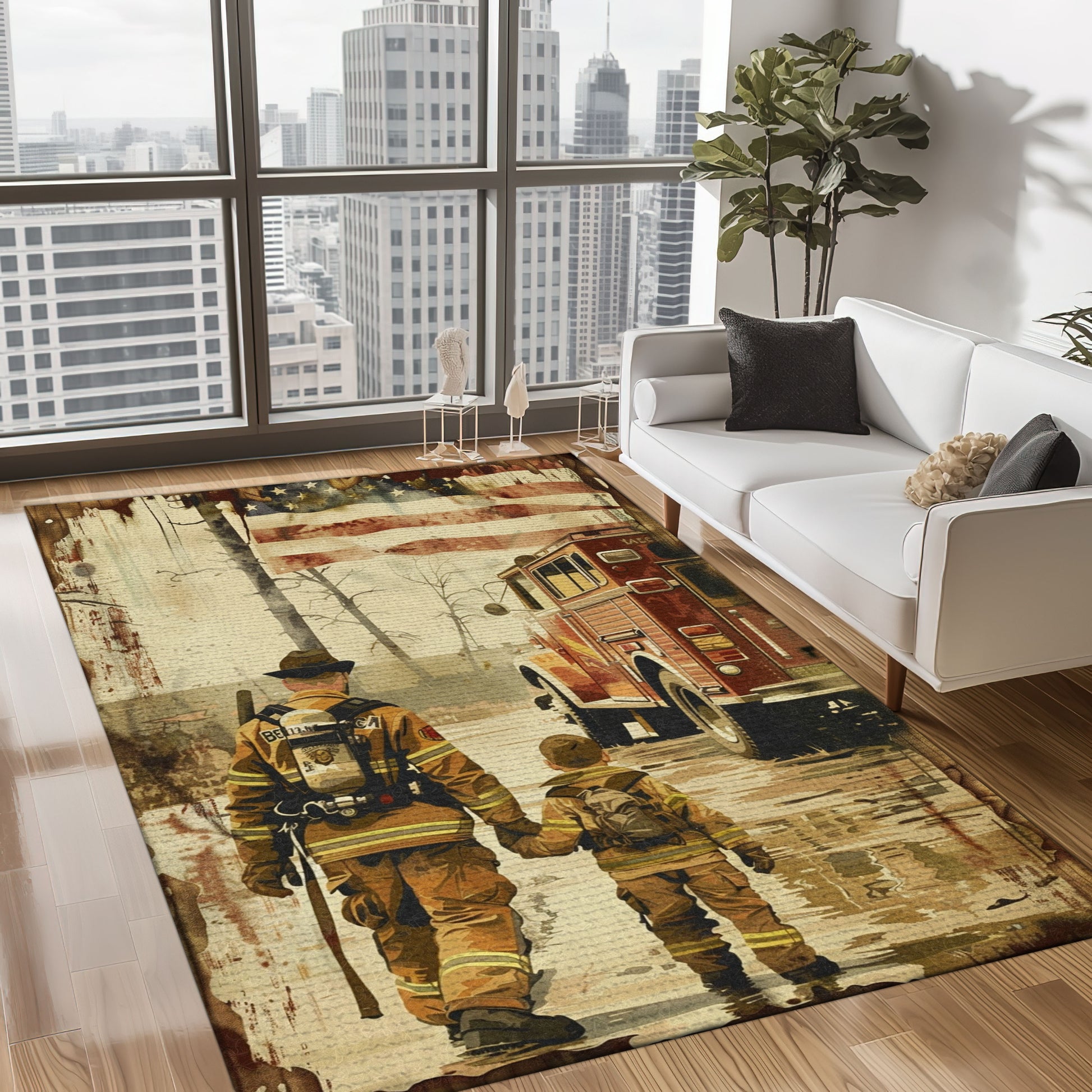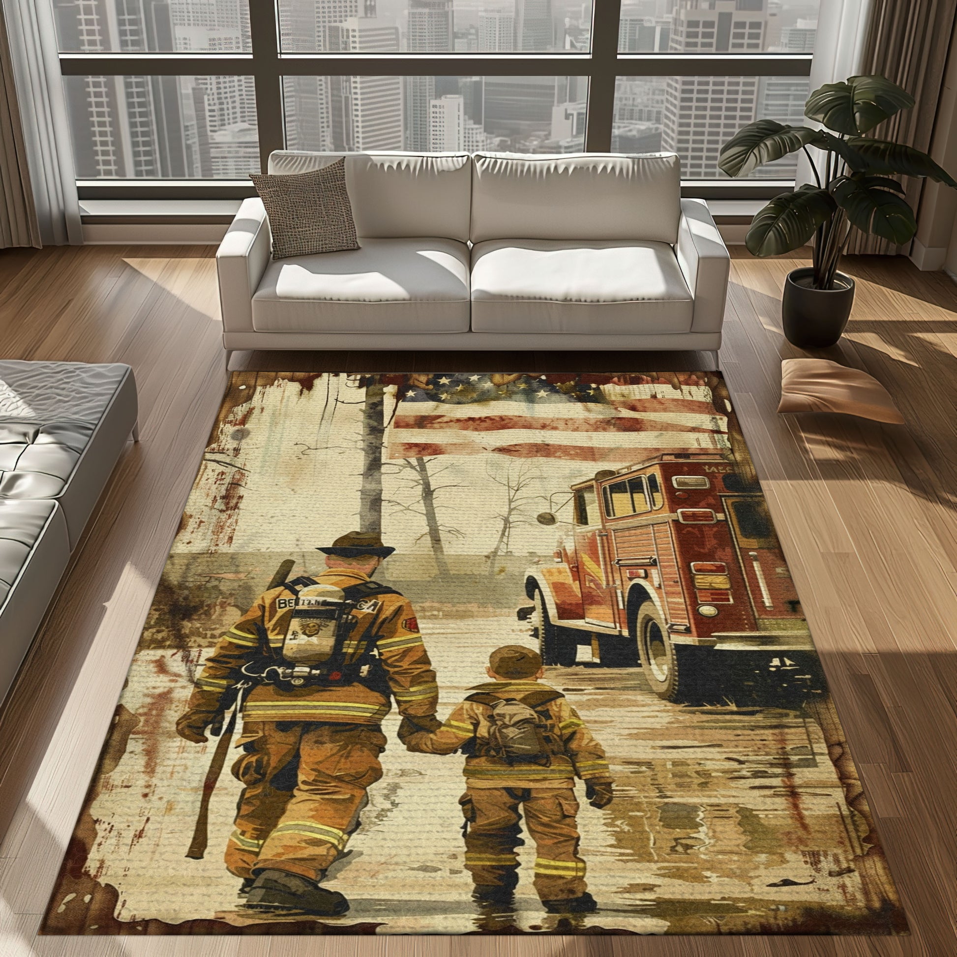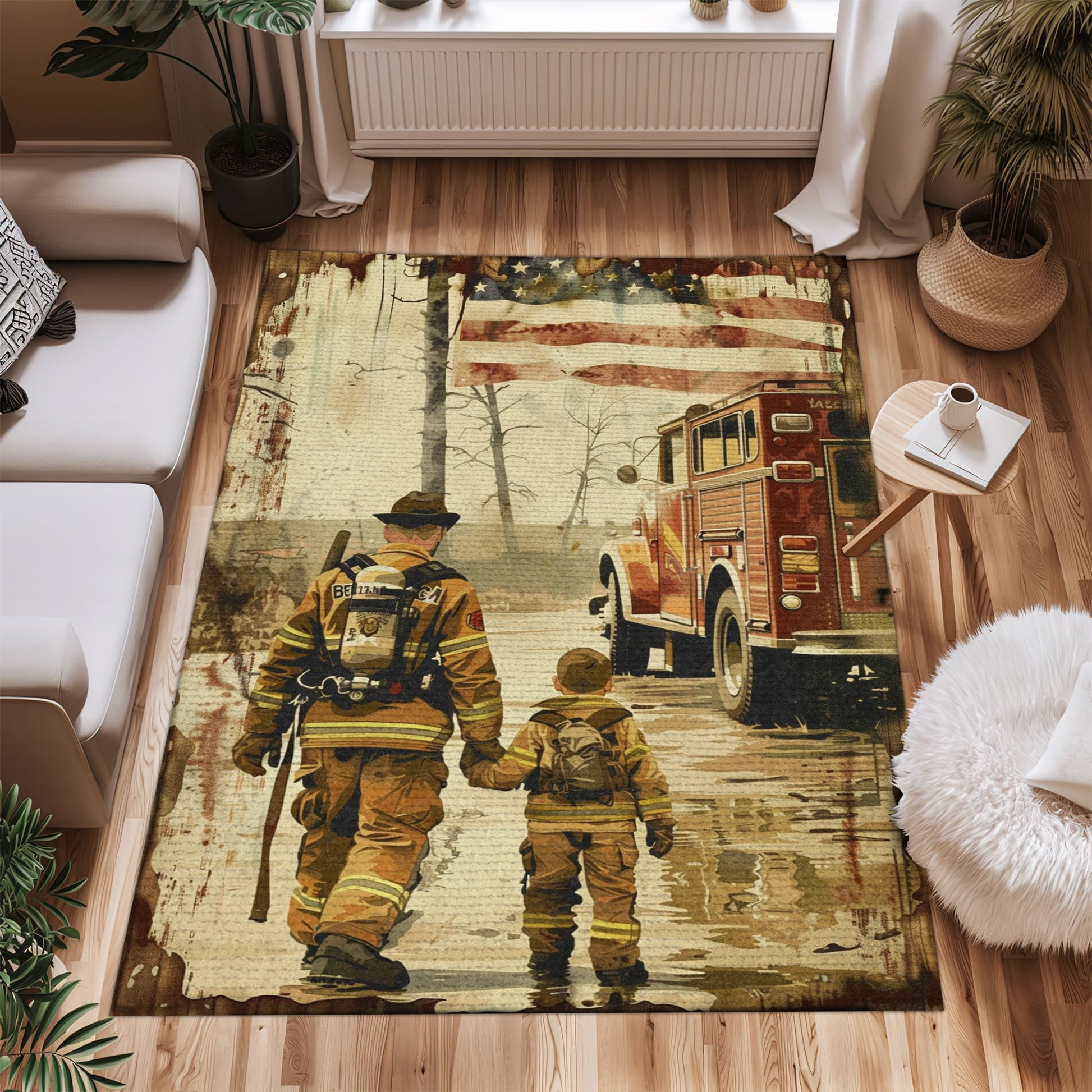 Vibrant Dad Firefighter and Son Personalized Area Rug: Celebrate Fatherhood and Courage, Firefighter Rugs for Living Room Bedroom, Firefighter Rectangular Rugs Full Size FR69