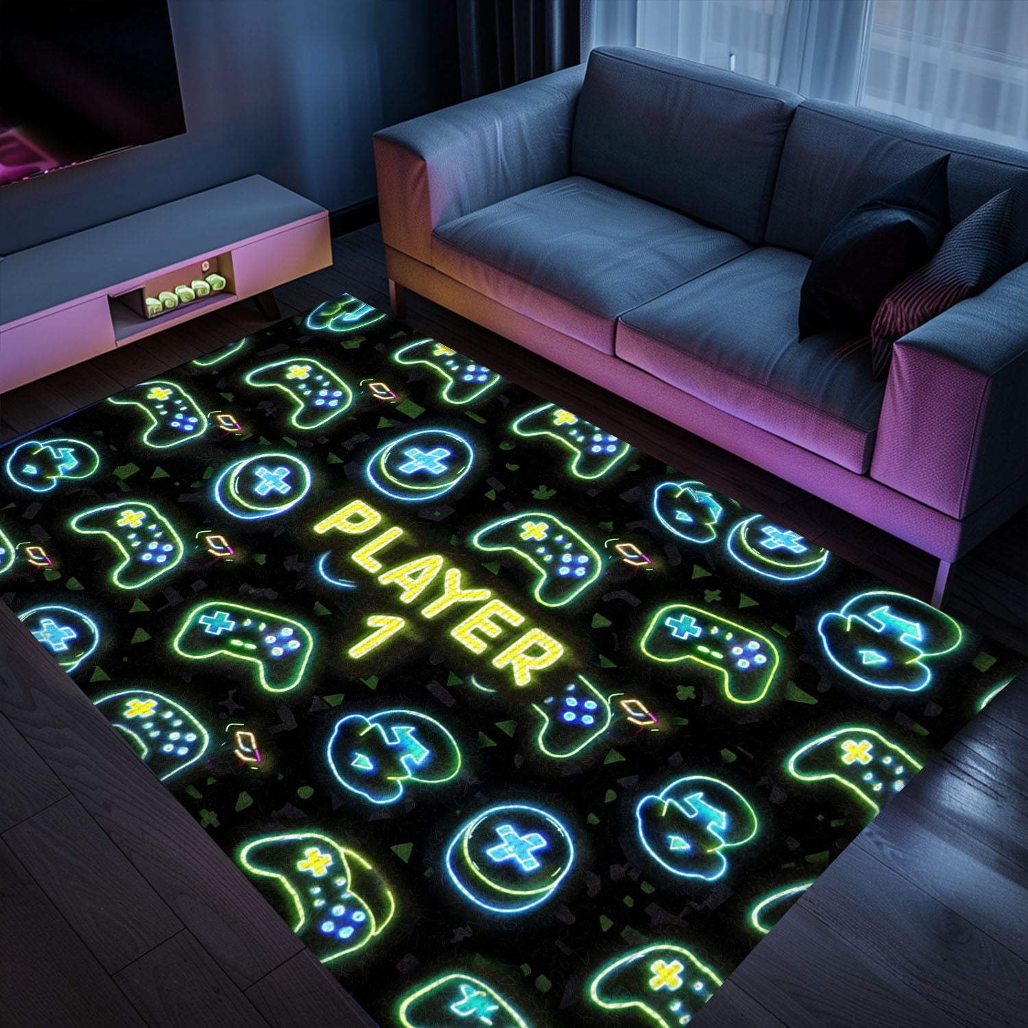 Vibrant Neon Video Game Retro Arcade Carpet for Bedroom, Great Gift Idea for Gamers and Retro Fans, Arcade Decor, Gift for Gamers, Video Game Lovers G85