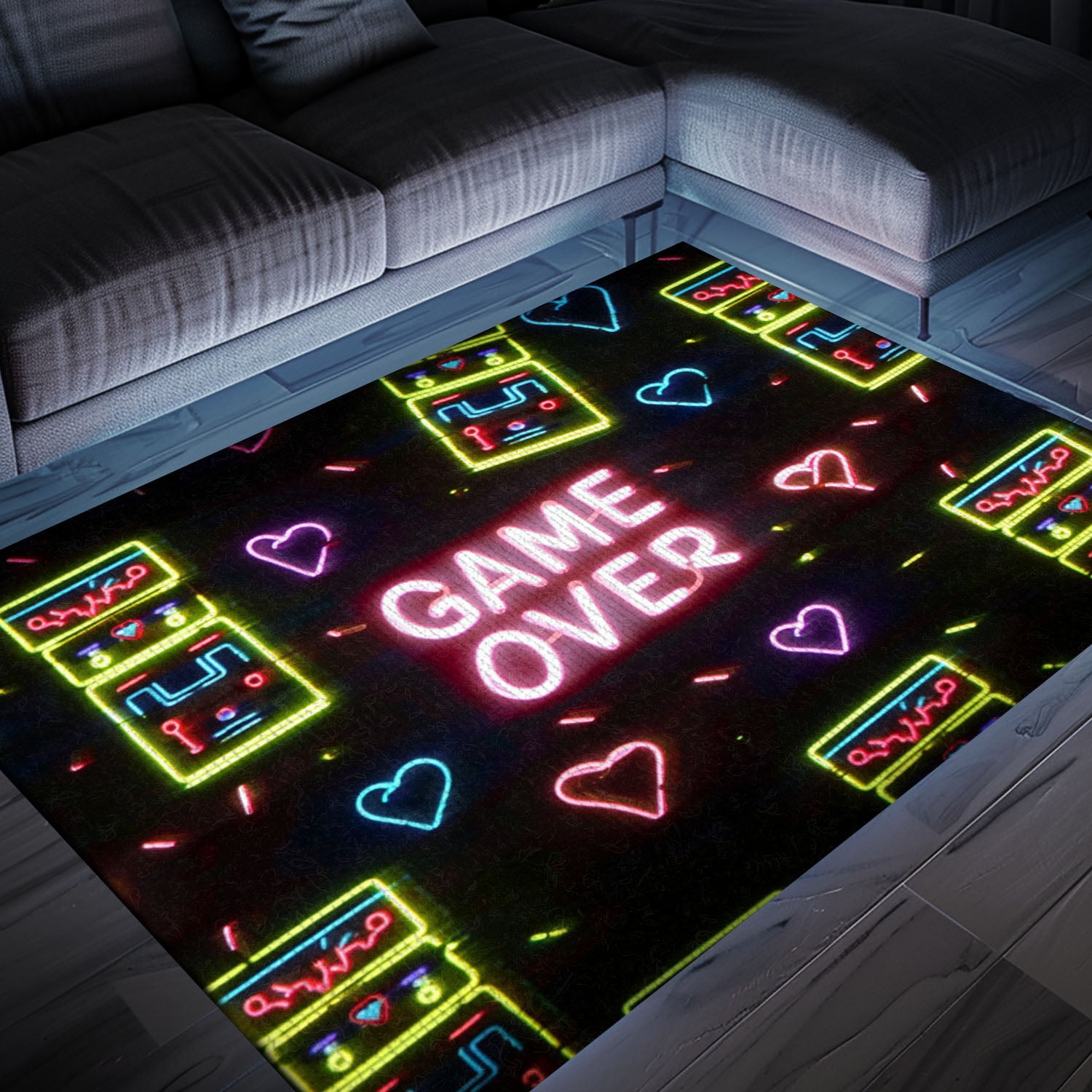 Vibrant Neon Video Game Retro Arcade Game Room Area Rug: Perfect for Creating a Gaming Haven at Home, Arcade Decor, Gift for Gamers, Video Game Lovers G111