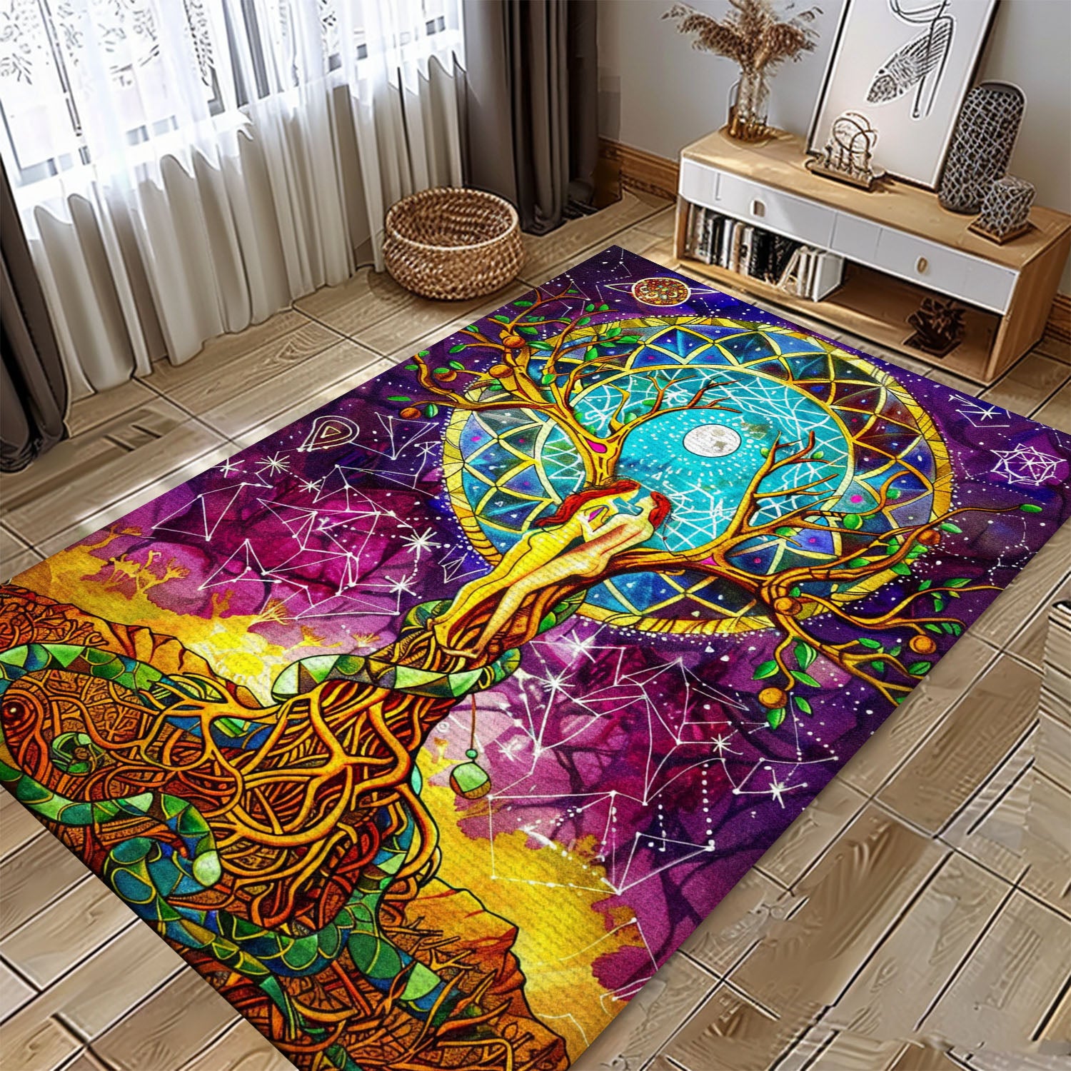 Viking Area Rug Featuring Mythical Tree of Life Motif, Personalized Carpet Viking, Viking Area Rugs for Living Room, Viking Carpet Bedroom, Popular Rug Full Size (3x5, 4x6, 5x8) V138